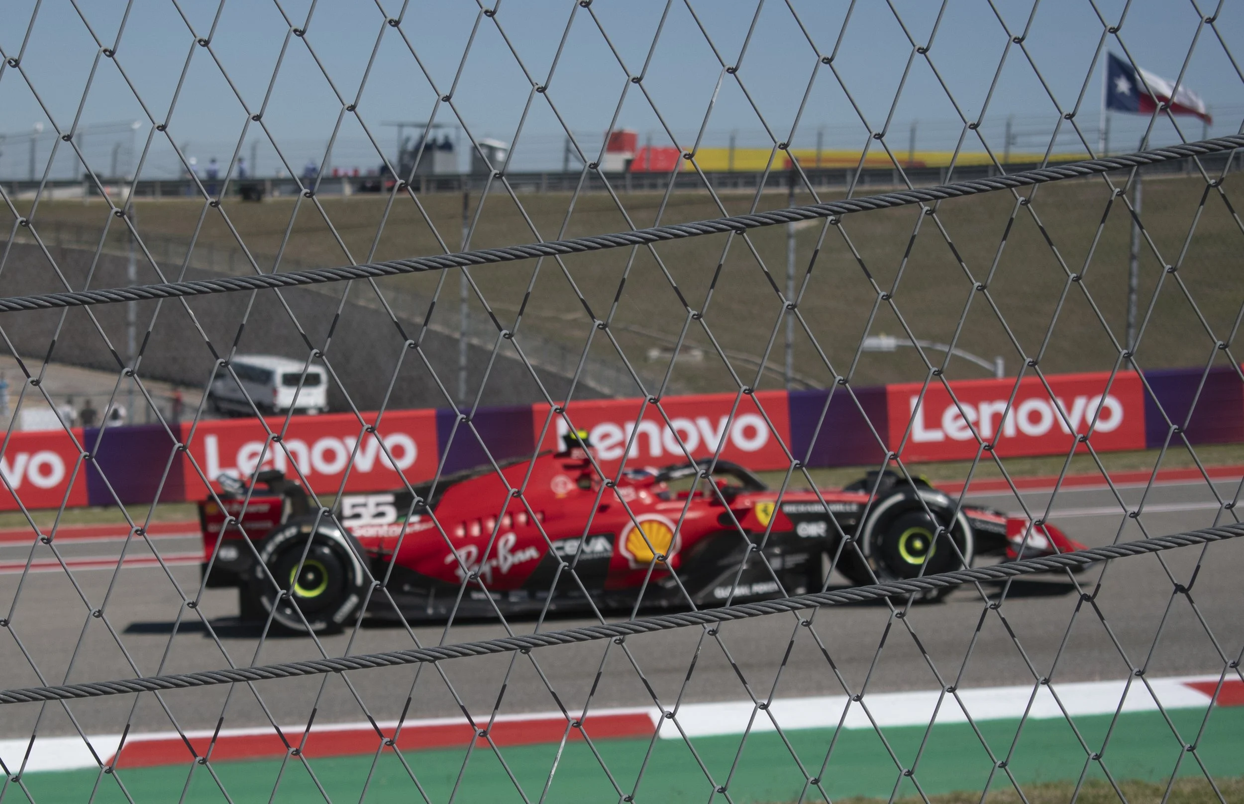 Carlos Sainz drives for the Ferrari Formula 1 team. He finishes his last lap of the qualifier race and starts on pole position on Sunday's race in the Austin Grand Prix. (From F1 Photo Story Assignment)