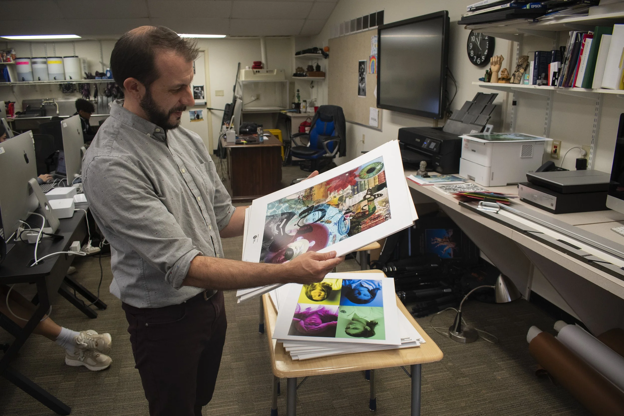 A proud teacher, Mr. Petersen smiles as he reflects on the final projects his students turned in. He looks forward to seeing what their creative minds come up with next. (From Photo Story - Mr. Petersen)