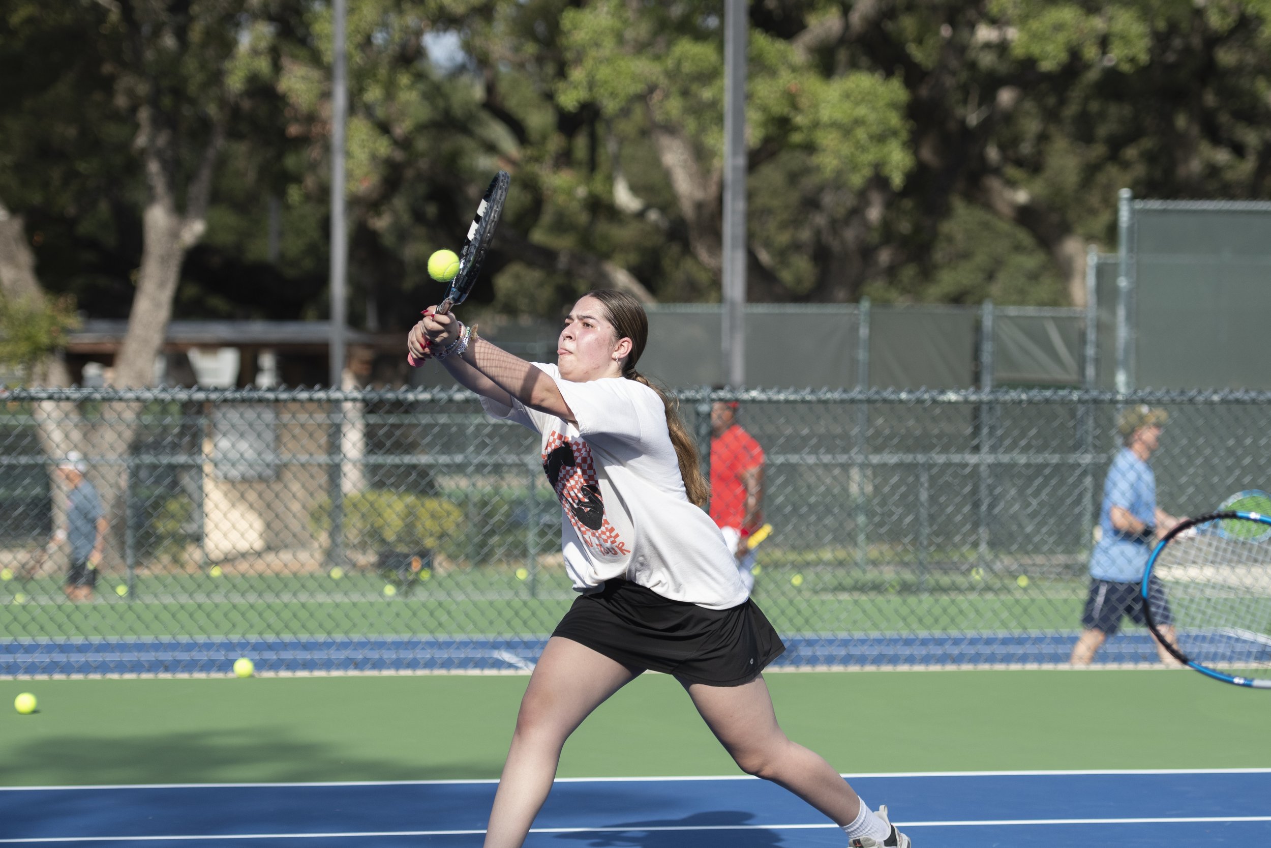 Raquel returns a volley during her tennis practice. (From Sports Photography Assignment)